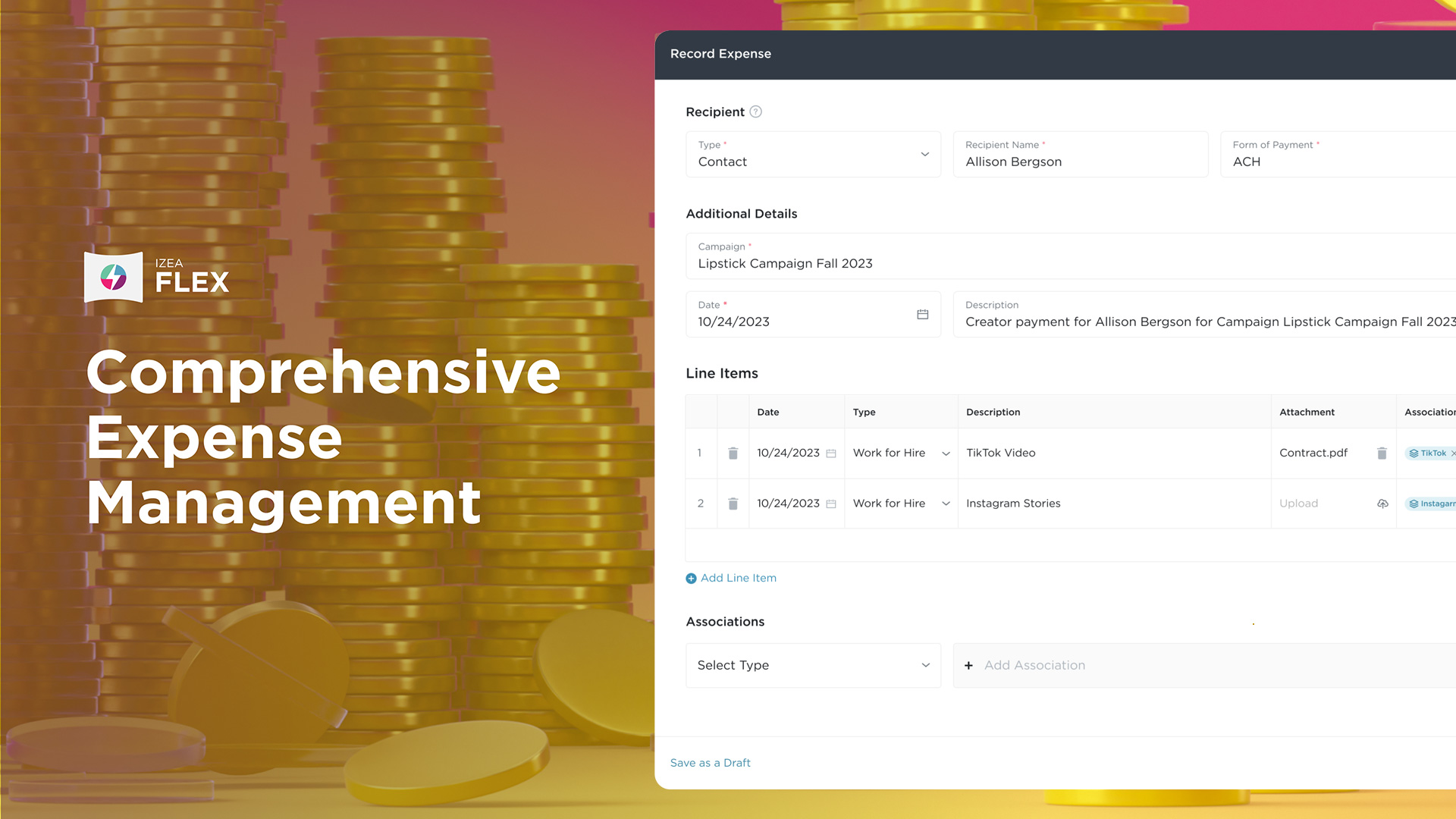 "The addition of comprehensive expense tracking to IZEA Flex helps our customers better manage and track their campaign expenses, providing visibility to team members across their influencer marketing organization,” said Ted Murphy, IZEA’s founder and CEO. “Whether a creator payment is made electronically inside of Flex or provided through any other means, marketers can quickly understand the true costs of executing their influencer marketing campaigns, driving complete measurement and understanding of return on investment.”